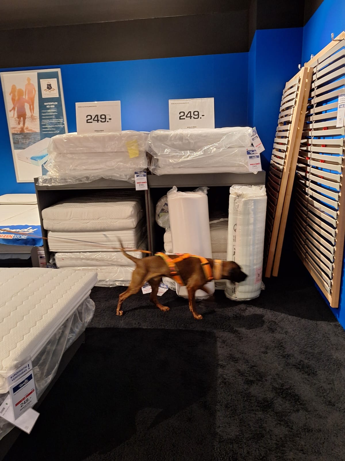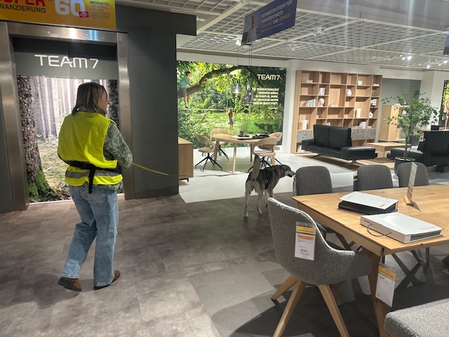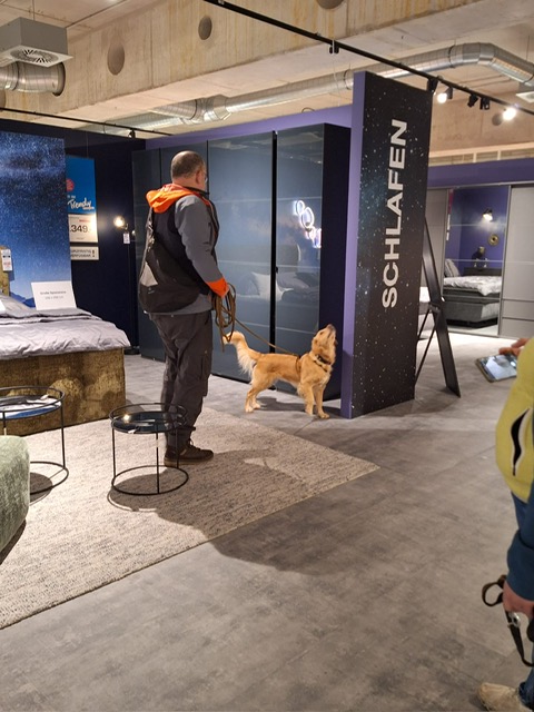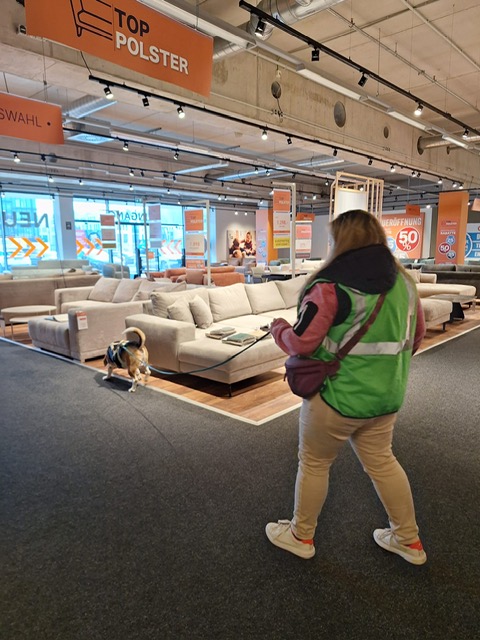 Die vielen Gerüche und der Publikumsverkehr waren eine große Herausforderung und entsprechend ausgelastet waren am Ende alle Vierbeiner. Beim anschließenden Besuch in der Cafeteria konnten sich alle über das Erlebte austauschen.