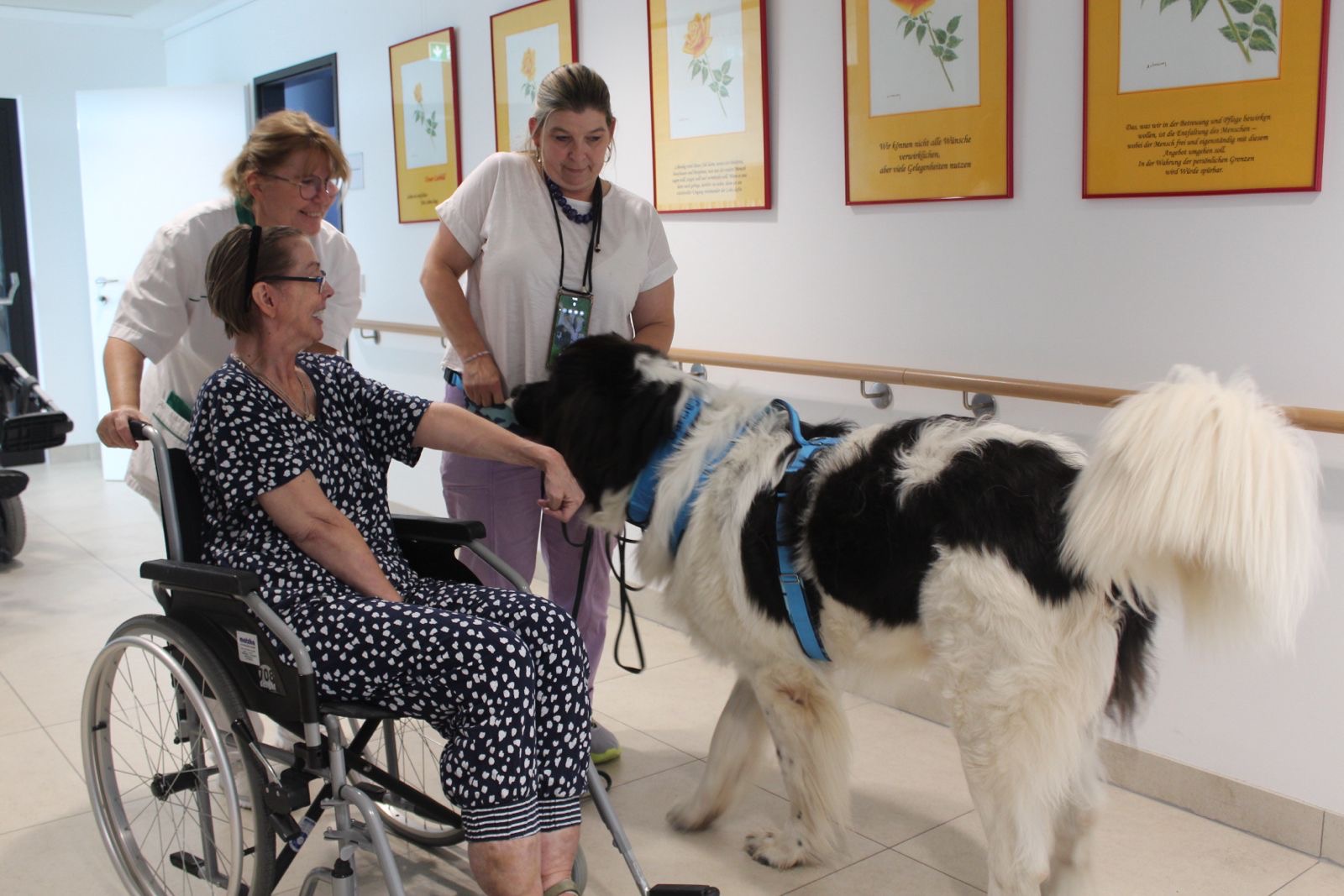 Markus, Mariella und Sabine brachten mit einer großen Hundegruppe Schwung in die Gänge des Pflegeheims.