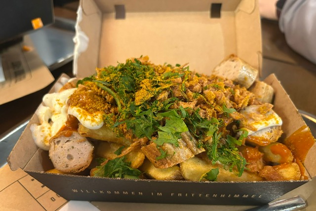 Nach Einbruch der Dunkelheit und nachdem die Hunde versorgt waren, stärkten wir uns schließlich selbst – das und mit wunderbar knusprigen Pommes aus Metzingen.